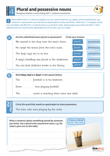 When talking about ownership, we must use the possessive case. They are made possessive by adding an apostrophe and the letter s. This set of 3 worksheets will really have your students concentrating! Learn about a key part of great grammar: These worksheets provide additional practice in identifying and writing plural and possessive nouns.